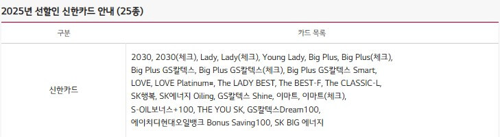선할인 신한카드 안내(25종)