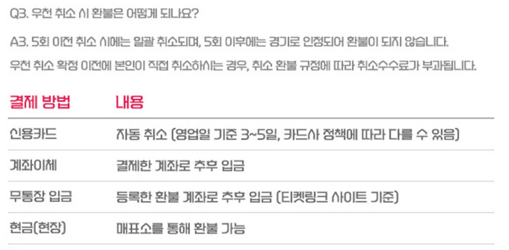 우천 시 환불 규정에 대하여