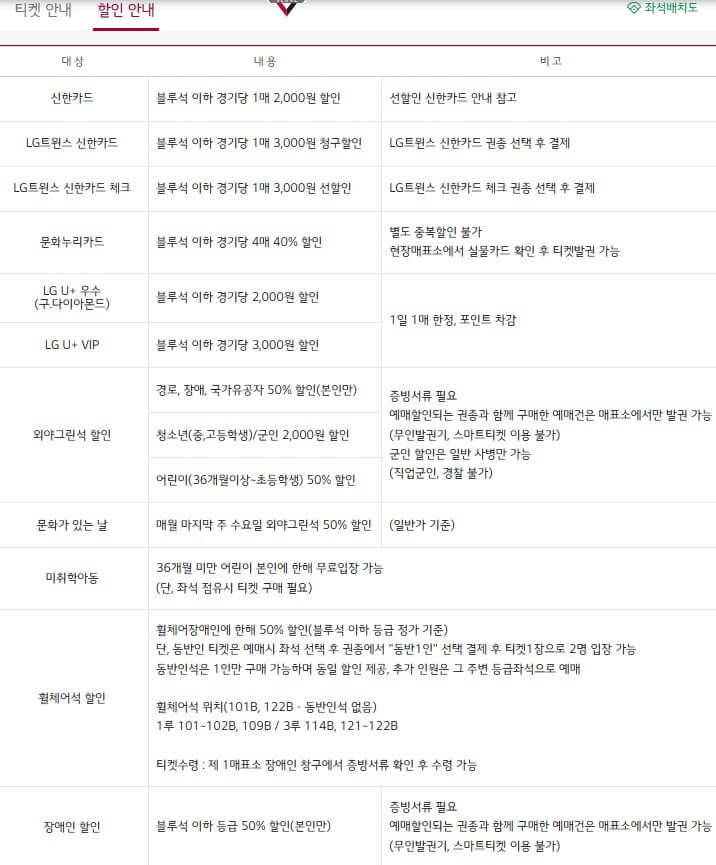 LG트윈스 티켓 예매 시 할인 안내
